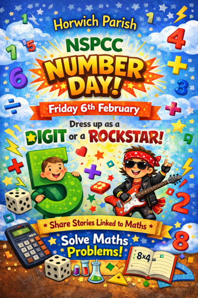 - We are having a fun day of maths activities, and we will be taking part in Dress up for Digits. Pupils are asked to wear an item of clothing with a number on it (football shirt, cap, netball shirt or even a onesie!). Or get even more creative by dressing in a maths or numbers theme. Alternatively, KS2 children can dress as rockstars as we will be taking part in the NSPCC Rocks competition. To help raise money for the NSPCC, we are asking for donations, and we’d love everyone in the school to take part in this special event.