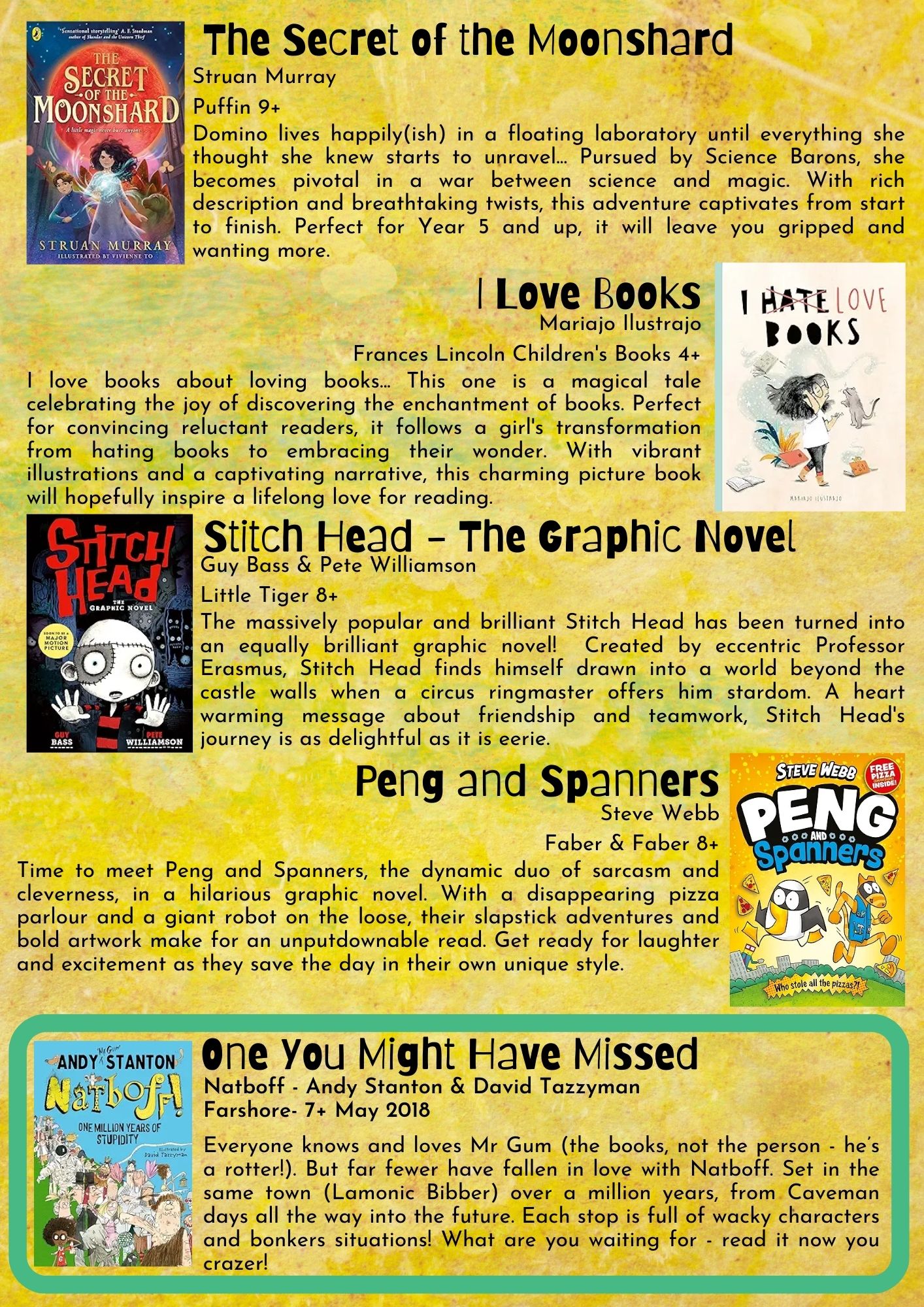 Here you will find lots of stories read or recommended by our teachers and teaching assistants and links to videos of stories which you could watch and enjoy at home.